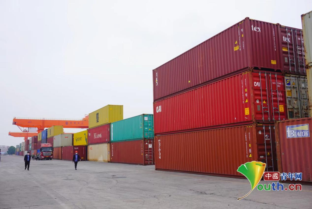 义乌西站铁路口岸上堆满集装箱。 中国青年网记者 曹迪摄