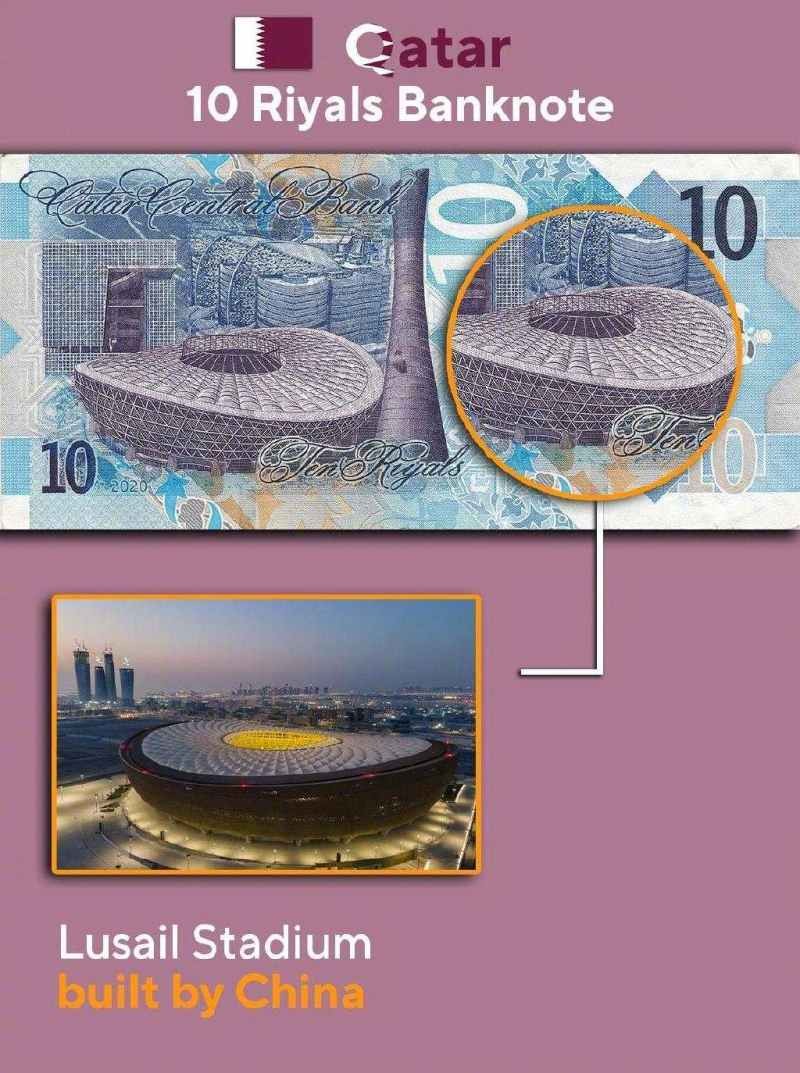 此前,2020年12月发行的新版10卡塔尔里亚尔纸币也印有卢赛尔体育场图案。