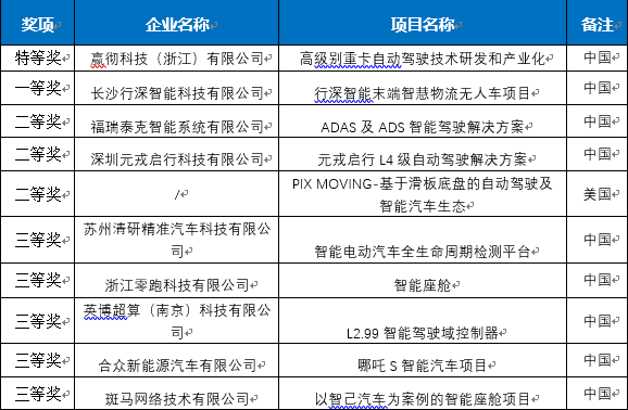 嬴彻科技(浙江)有限公司的高级别重卡自动驾驶技术研发和产业化项目夺得网联汽车专题赛特等奖。
