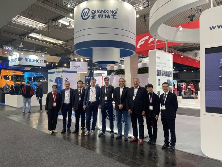 一到德国,何文华团队就接连参加了德国法兰克福汽车零部件展、2022德国汉诺威国际商用车展。这次团队带去了15个新产品参展,全部集中在新能源汽车领域。