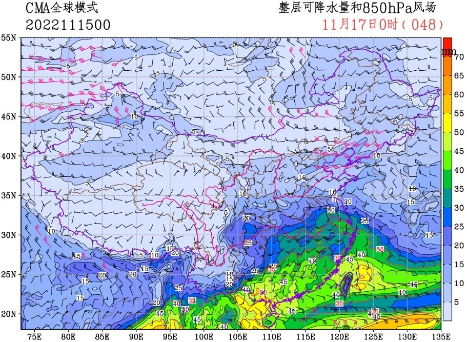 南风上岸,水汽通道疏通,暖湿气流往江南一带输送。