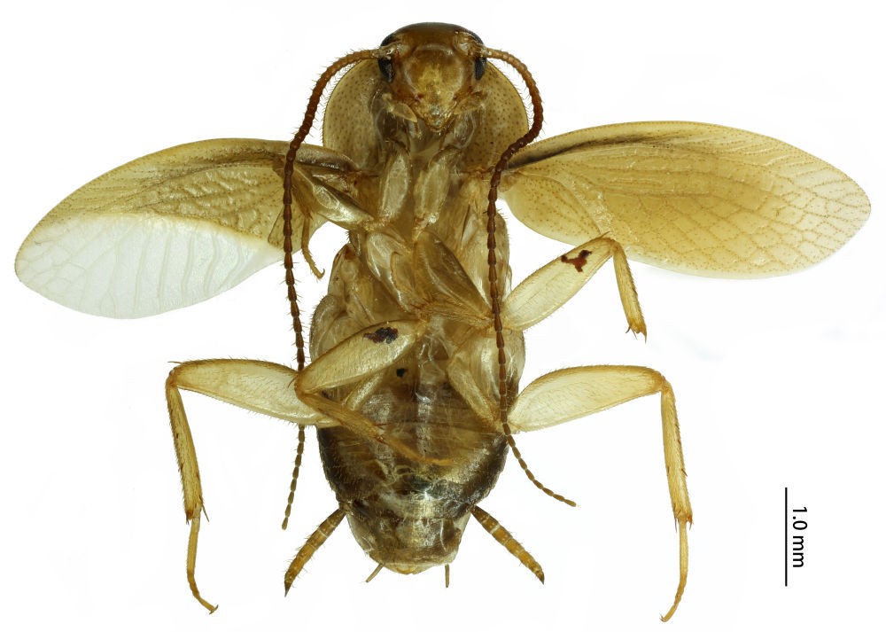 实验室技术人员通过DNA条形码技术及形态学鉴定,均未匹配到已知的蜚蠊种类,在查阅大量文献资料并向国内外多位专家咨询、讨论的基础上,经进一步研究,依程序确认该头蜚蠊为未被描述过的拉丁蠊属蜚蠊物种,为全球首次报道。