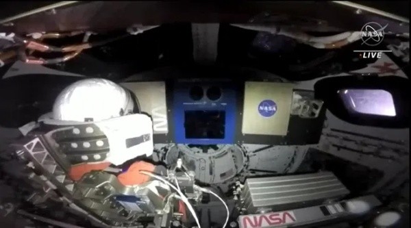 猎户座在升空约2小时后脱离火箭,宇宙飞船内外配备16个镜头,以便从不同的角度拍摄绕月飞行任务。显示,升空9小时后镜头拍到猎户座一角及部分地球图像,并有假人指令长坎波斯(Moonikin Campos)坐在舱内的照片。假人以NASA已故工程师坎波斯命名,他是当年把“阿波罗13号”宇航员安全送返地球的功臣之一。