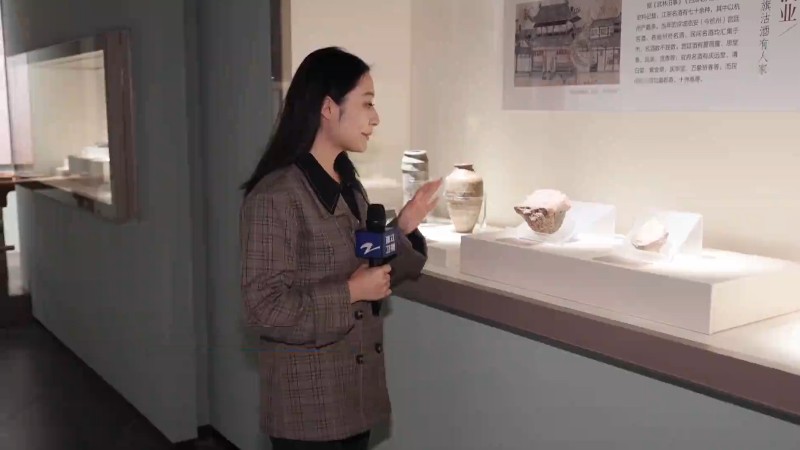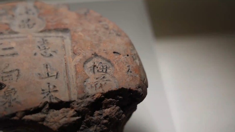 记者在现场看到,这只宋代的酒坛封泥上面八百年前的字迹还清晰可见。这个“上品”,说的是酒的质量很好。旁边的“梅花”是酒的种类,这件展品也表明德寿宫周围的百姓当时生活非常丰富。