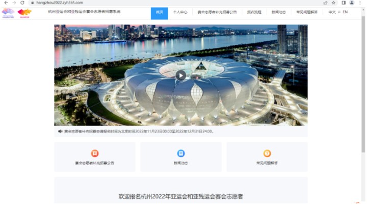 杭州亚运会赛会志愿者招募系统首页截图