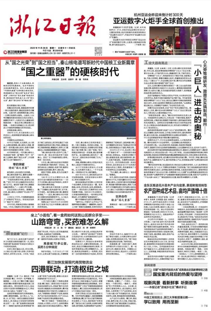 编者按:党的二十大报告提出,积极安全有序发展核电。这为中国核电未来发展举旗定向。近日,记者走进有“中国核电摇篮”之称的秦山核电采访,深度触摸它从“国之光荣”成长为“国之重器”、不断作出“国之贡献”的艰苦历程,深刻感悟中国民族工业心怀“国之大者”、履行“国之担当”的“硬核力量”。