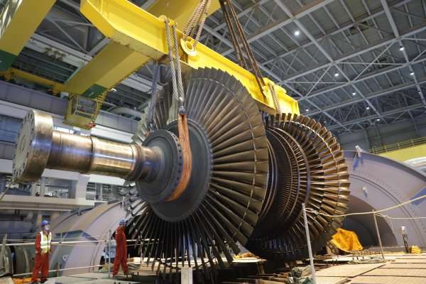 秦山核电内部,方家山106大修低压缸转子吊运现场。受访单位供图