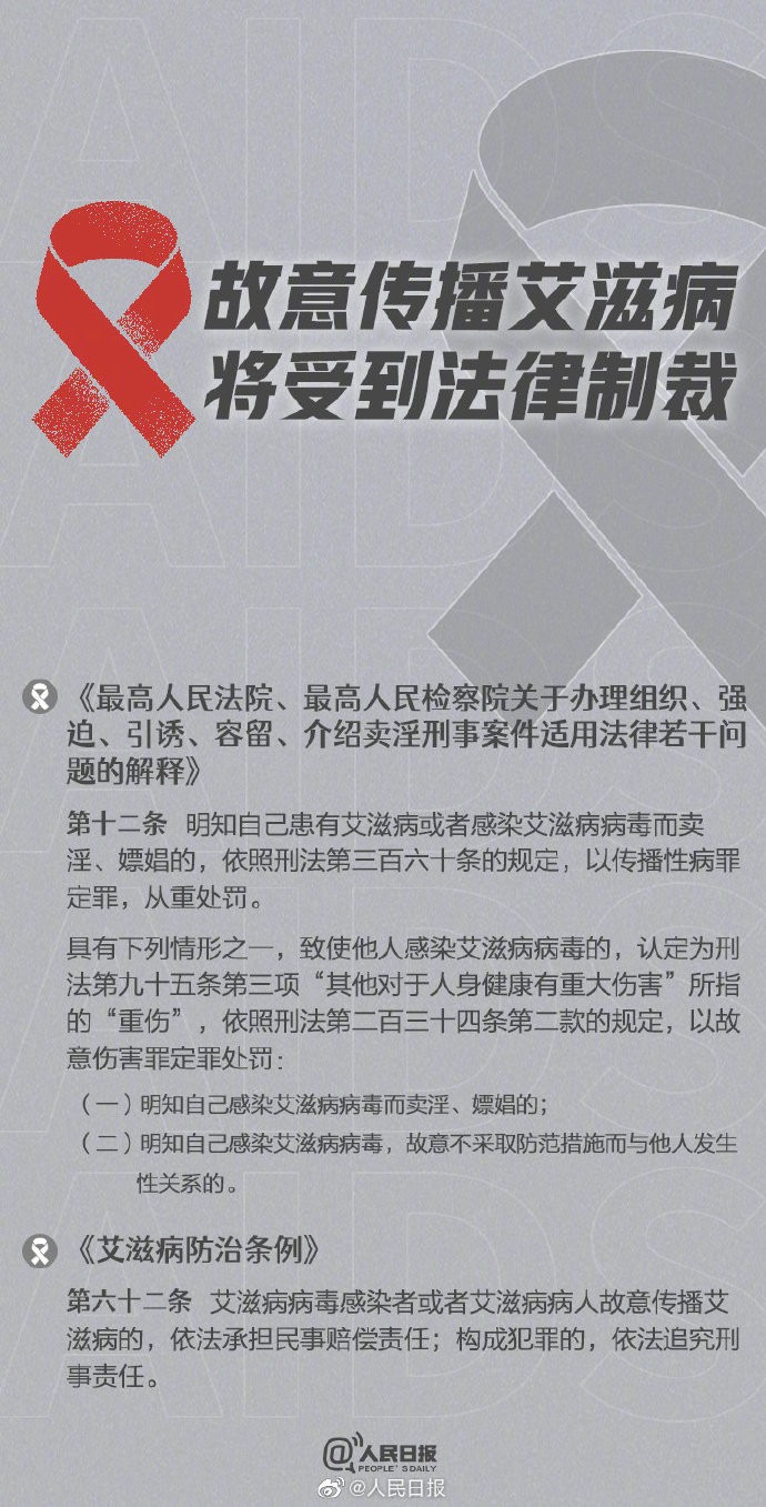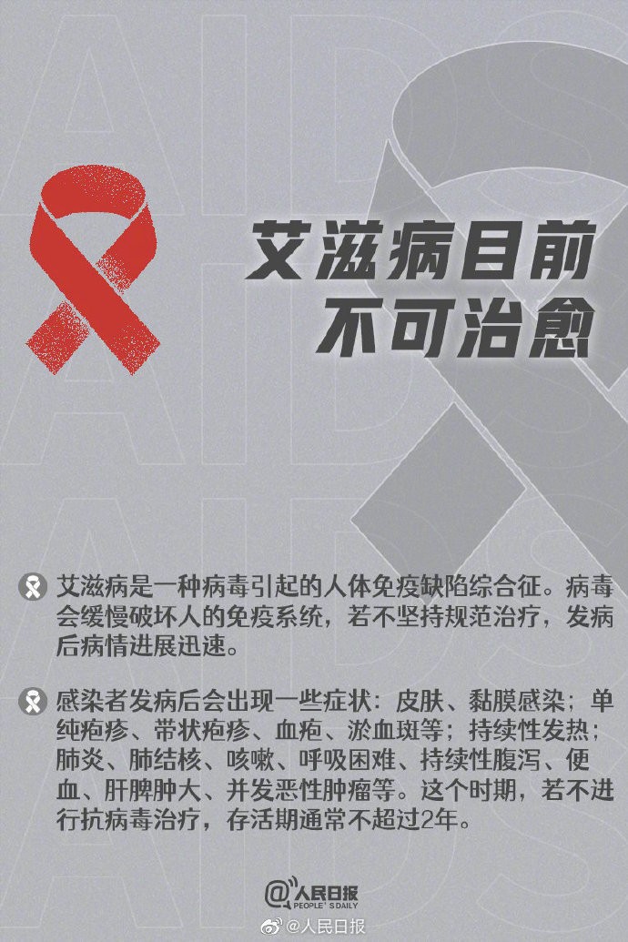 ①据中国疾控艾防中心数据显示,每年新报告3000多例青年学生病例;②艾滋病目前不可治愈,但可积极预防和控制;③艾滋病黄金阻断期是接触病毒2小时内;④故意传播艾滋病,将受到法律制裁。今天,第35个“世界艾滋病日”。了解预防,消除歧视↓