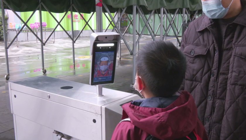浙江省教育科学研究院附属小学校长 张媛:学校坚持把好校门关,智慧识别系统通过扫脸及时识别孩子们的体温及核酸结果,无异常才予以放行。上下学途中要求学生全程佩戴口罩,提醒家长做好个人防护,家校联动确保“无疫校园。