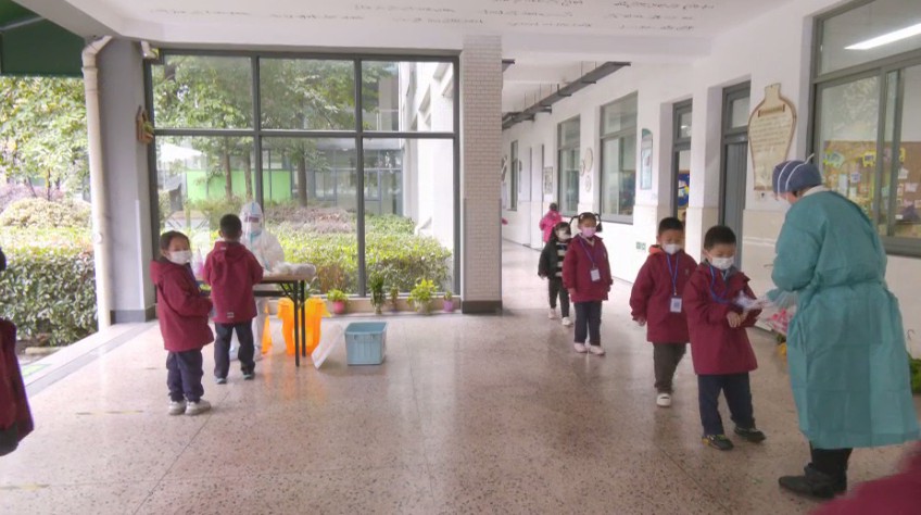 在浙江省教育科学研究院附属小学,10个核酸检测点正在为师生正在开展全员核酸检测,这也是学校每周一三五的常态化核酸检测。此外,班级学生的体温晨检和午检也按时进行。