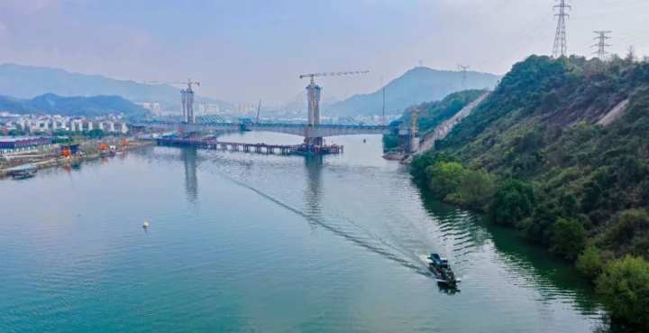 近日,杭衢铁路控制性工程新安江特大桥顺利合龙,标志着杭衢铁路建设取得重要进展。