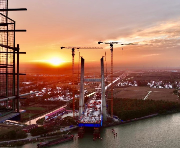 11月28日,沪苏湖铁路跨斜塘航道斜拉桥最后一个主塔顺利封顶。沪苏湖铁路跨斜塘航道斜拉桥地处上海市松江区石湖荡镇境内,横跨斜塘航道,全长460米,主跨260米。
