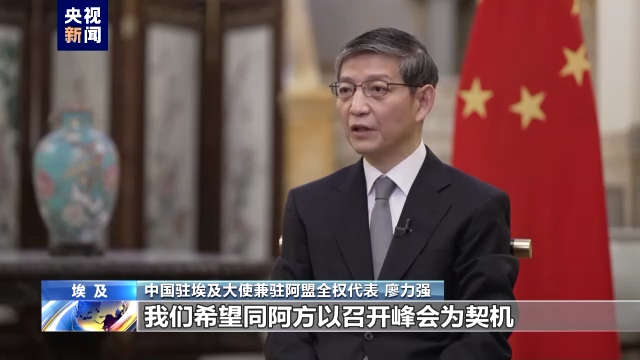 中国驻埃及大使兼驻阿盟全权代表 廖力强:我们希望同阿方以召开峰会为契机,共商中阿关系发展大计;进一步凝聚双方在重大地区和国际问题上的战略共识,为中东与世界的和平与发展注入正能量,全力构建面向新时代的中阿命运共同体。