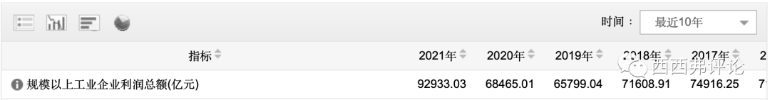 有不好的,也有好的。2021年,规模以上工业企业利润总额,同比增长超过30%,从6.8万亿,增长到9.3万亿。2022年1-10月,虽然同比有所下降,但也远高于2019年1-10月水平。