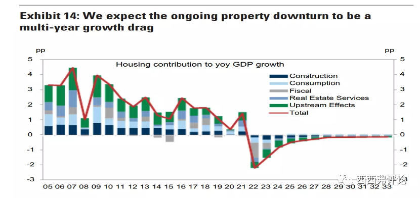 根据高盛的分析,在2022年,房地产业去杠杆对中国增长的负面影响,是疫情因素的数倍。
