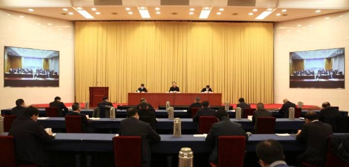 成岳冲作具体工作部署,姚高员、汤飞帆出席。会议采取视频形式召开,各设区市设分会场。