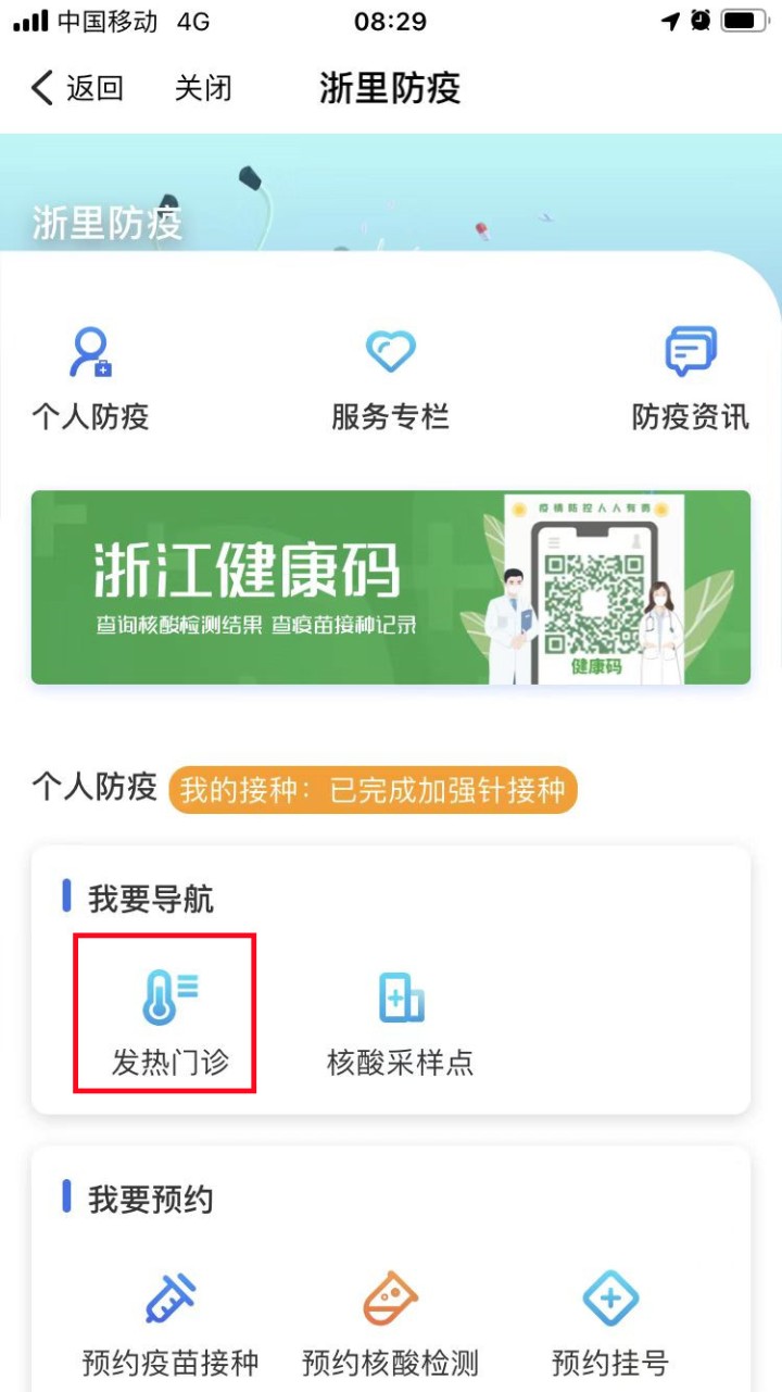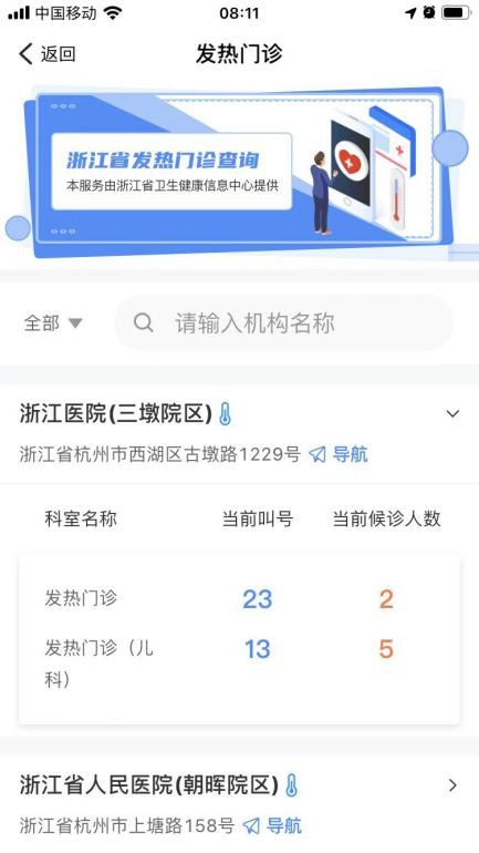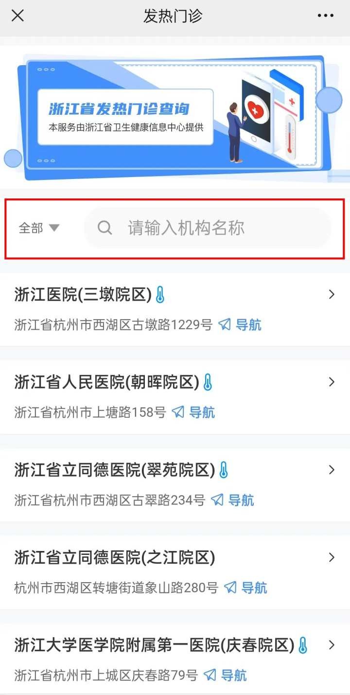 路径:浙里防疫专区—发热门诊查询