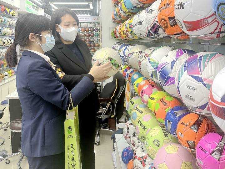 义乌工作人员走访体育用品商户。李咏峰 摄