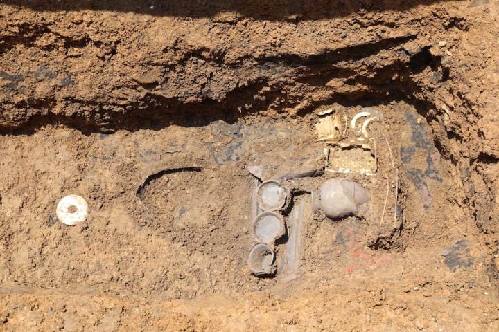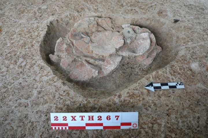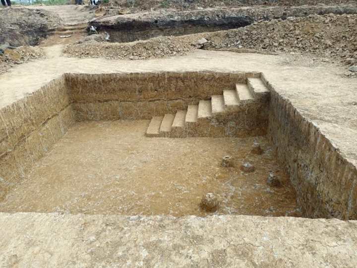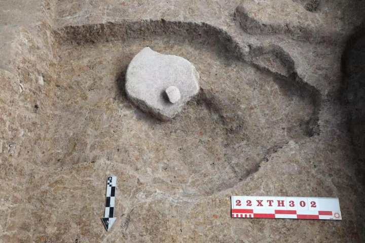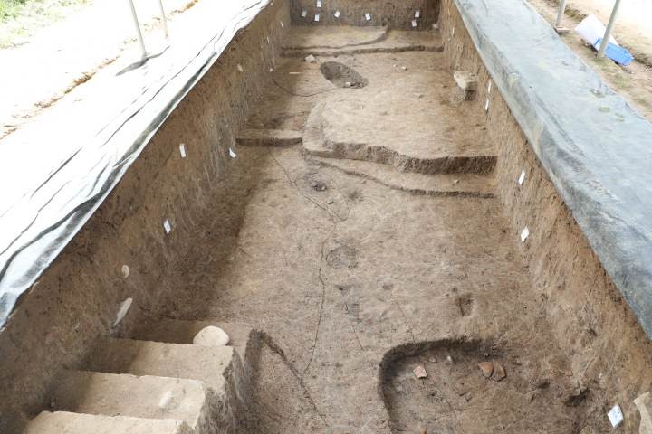 为了解遗址由中心向北部的发展过程及遗址西侧的地貌环境、寻找史前水田,2022年,申报主动性发掘350平方米,目前发掘正在进行中。在遗址北部土墩上布设3米宽,90米长探沟1条,土墩西部水田中布设2米宽30米长探沟1条。目前,西侧水田发掘已结束,土墩上发掘至上山文化层面,清理出露土台及相关遗迹后暂停发掘。