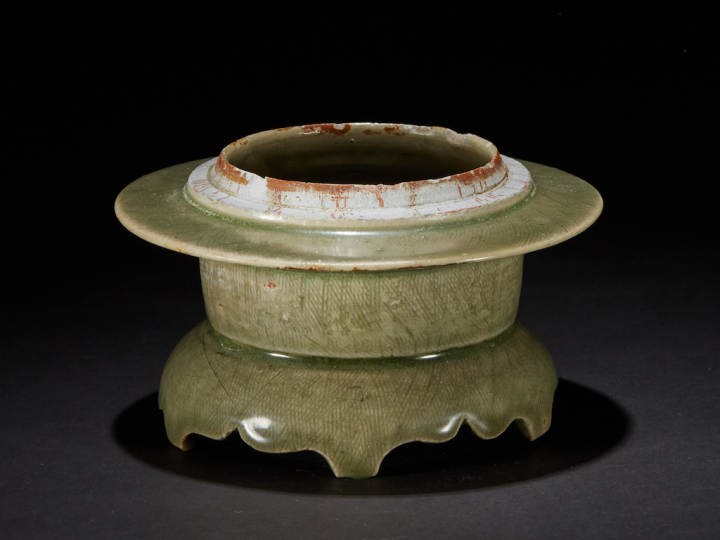 北宋龙泉窑青釉线刻菱格纹如意足瓷熏炉