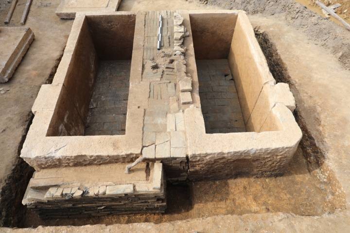 B地段主要由三组建筑遗迹和一处庭院构成,保留了由散水、明沟、暗沟和窨井等构成的完善的排水系统,并在庭院区域发现了开凿于北宋熙宁年间的圆照井遗迹。
