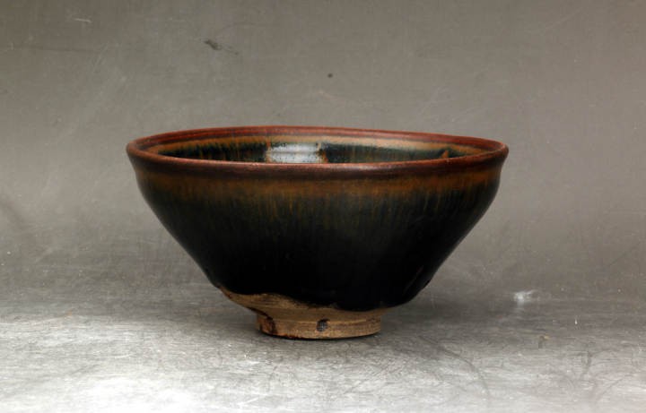 南宋建窑黑釉金丝兔毫纹瓷盏