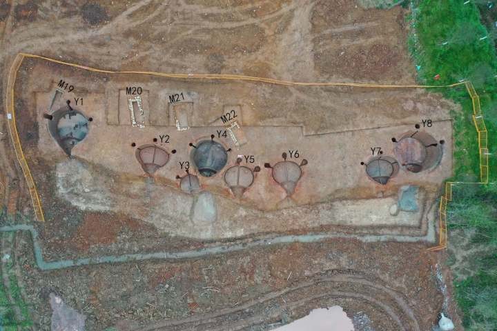 嵊州市下方山及周边墓群位于浙江省嵊州甘霖、长乐镇,长乐江北侧,系配合嵊州527国道建设仲发现,路线全长19.3公里。2021年底,浙江省文物考古研究所和嵊州市文物保护中心组成了联合考古队,对项目涉及的下方山、苔苔山、郯城、白塔湾4个地块进行发掘。经过近一年的考古工作,在发掘范围内发现不同历史时期的墓葬150余座,出土文物1200余件。