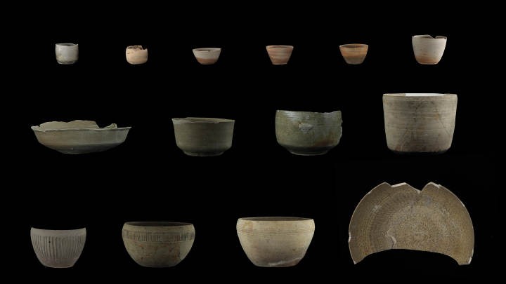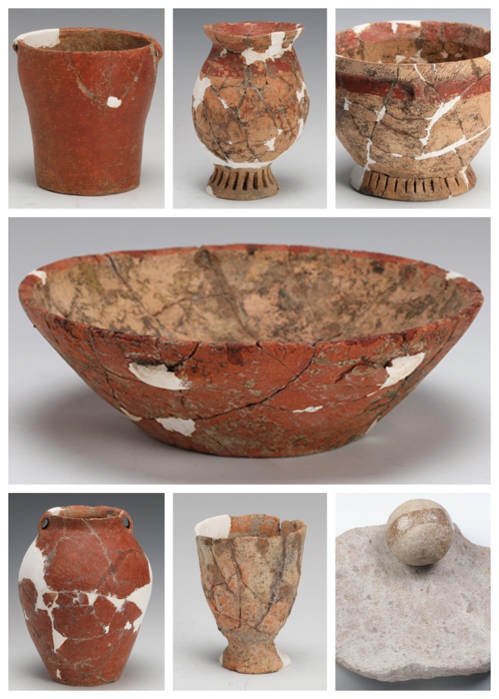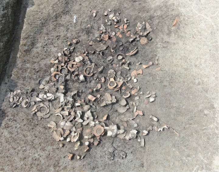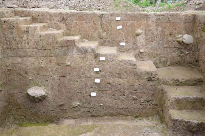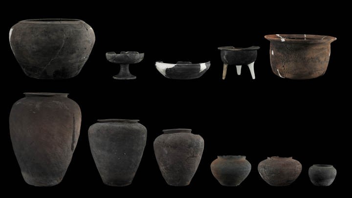 目前已清理四个阶段的灰坑约80座,上山文化时期人工堆筑的土台3座,沟槽1条,器物坑8座,环壕1条,好川文化时期水田1处,出土四个阶段的陶器、石器50余件。
