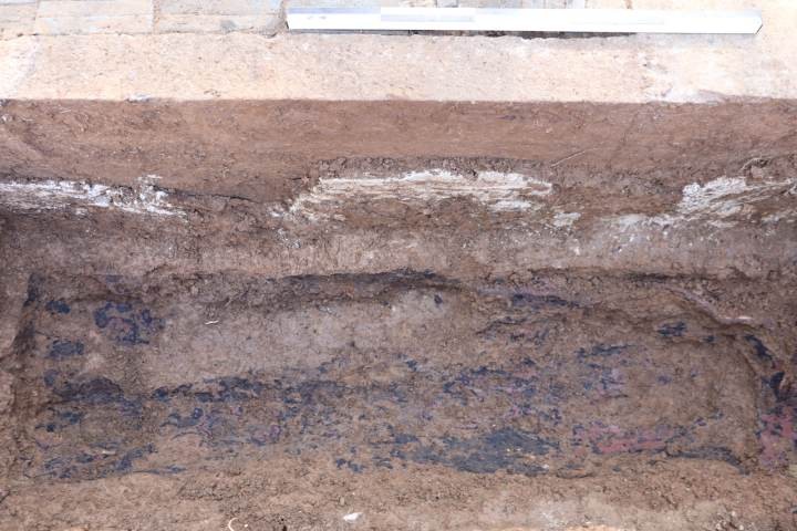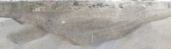 A地段第一期八边形夯土台基砖砌包边和压阑石剖面-西至东