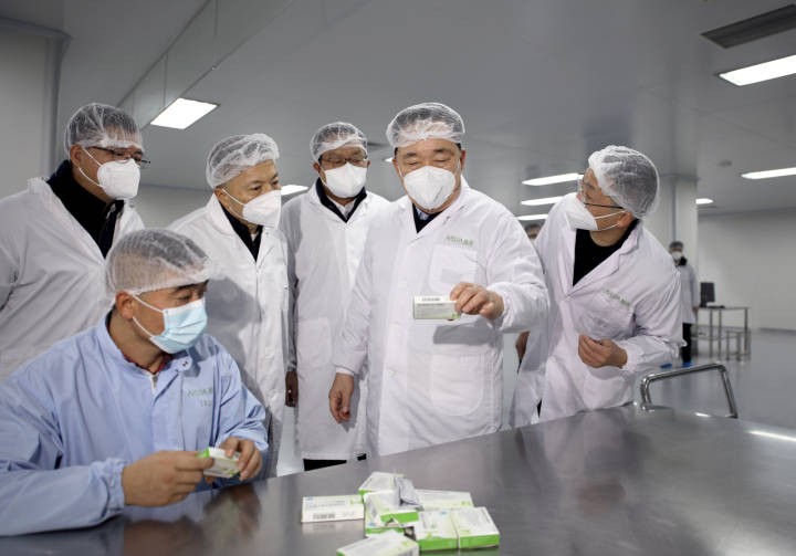 12月18日,省长王浩在金华调研并召开《政府工作报告(征求意见稿)》征求意见市县座谈会。图为在普洛药业调研。