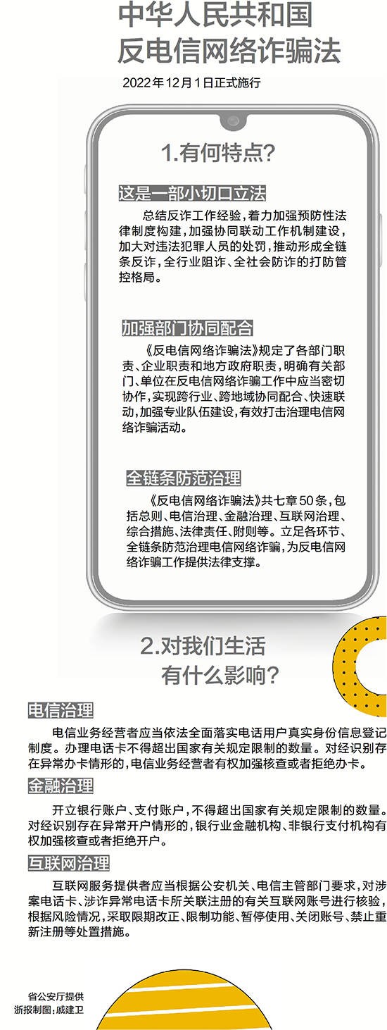 “小切口立法,能管大用。新法的实施,为我们源头治理,全链条打击电诈犯罪,提供了有力的法律支撑。”桐庐公安相关负责人介绍,电诈有一条很长的“产业链条”,涉及电信、金融等许多环节。此次出台的法律,针对电诈发生的信息链、资金链、技术链、人员链等各环节做了刚性规定,“只要切断其中一个环节,犯罪就能预防,这对提升精准打击防范非常有效”。