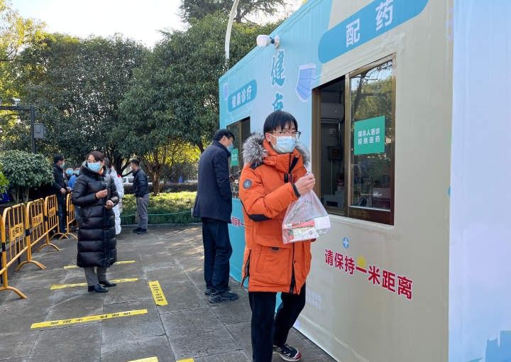 12月19日,杭州萧山区南江公园,第一个由核酸采样小屋改造成的健康诊疗站投入运行。21日下午14时,记者来到这里,刚到开放时间,门口已经开始排队。