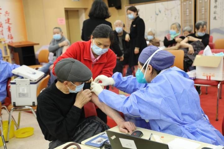 杭州市社会福利中心内,老人正在接种疫苗。杭州市社会福利中心供图