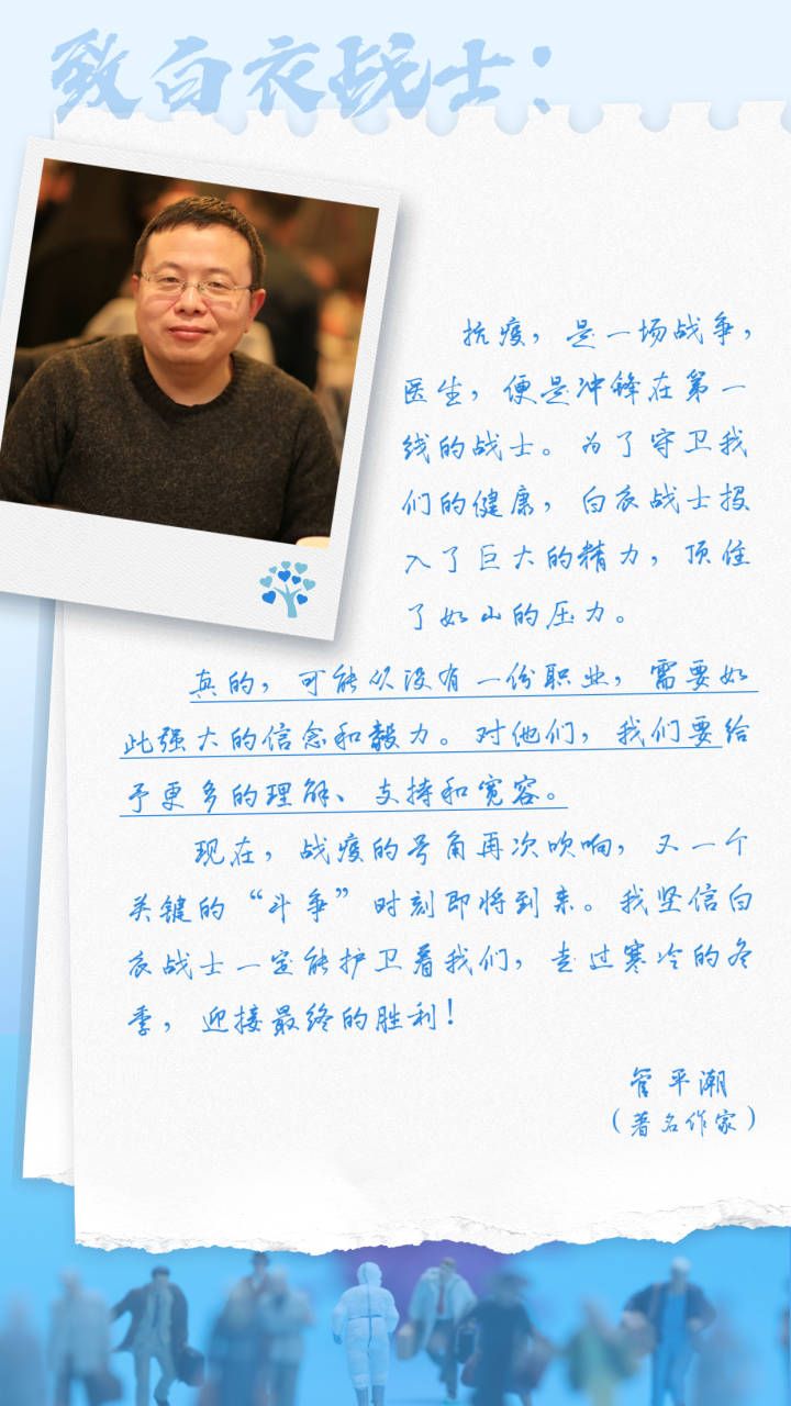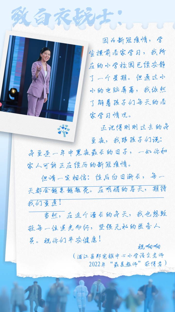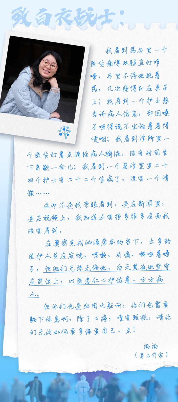 今天,浙江新闻客户端邀请到著名作家、老师、运动员……向最可爱的白衣战士,道出我们心中共同的敬意和祝福——