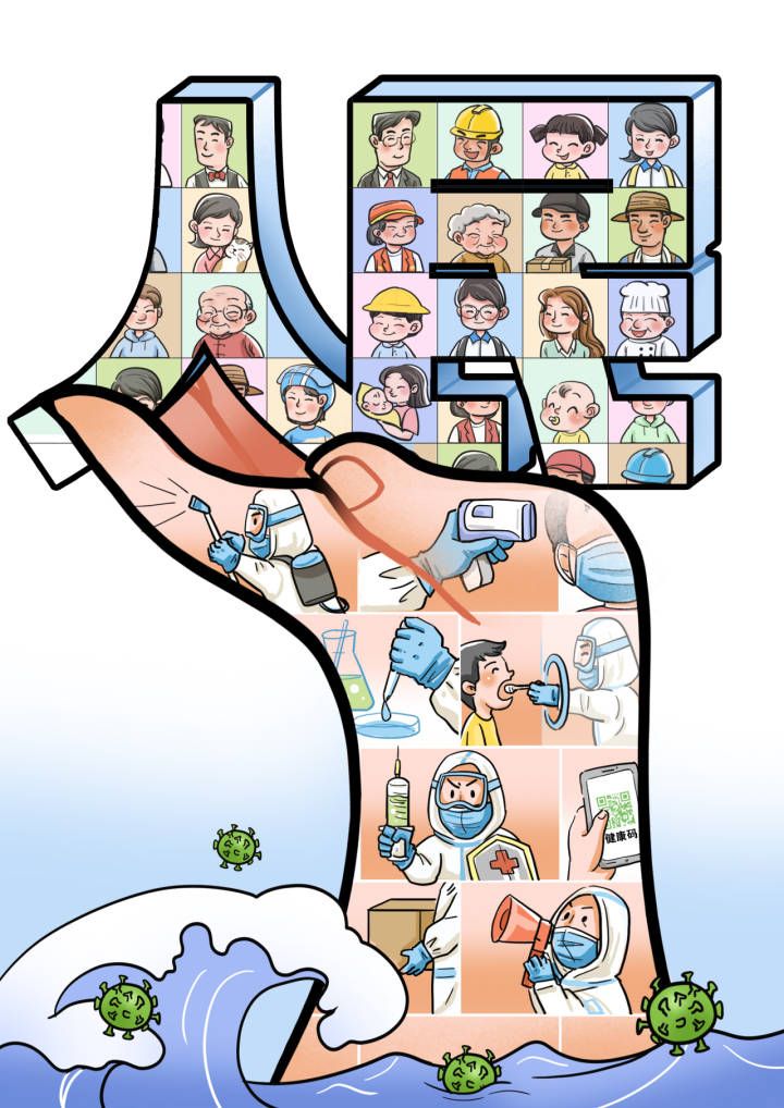 万众一心聚合力,击鼓催征稳驭舟。在与病毒赛跑的路上,我们将更加从容应对,在最大程度保护人民生命安全和身体健康的同时,更好统筹疫情防控和经济社会发展。