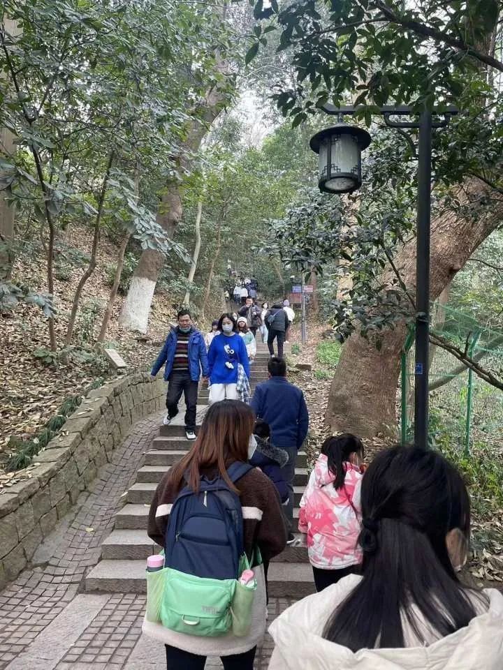 爬山的人群中