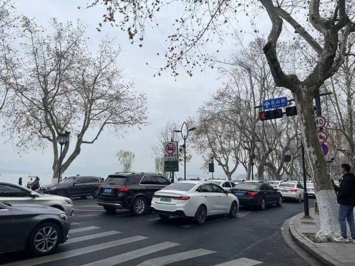 1月1日,杭州北山街上车子这个多啊。
