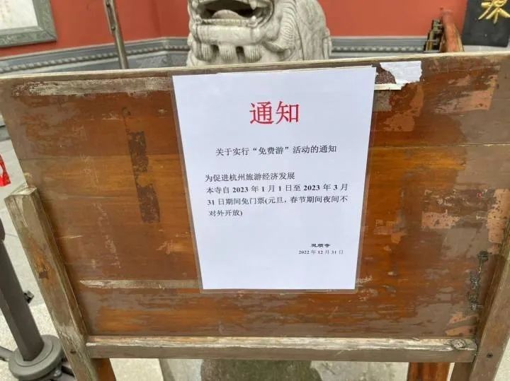 灵隐寺也于2023年1月1日至3月31日