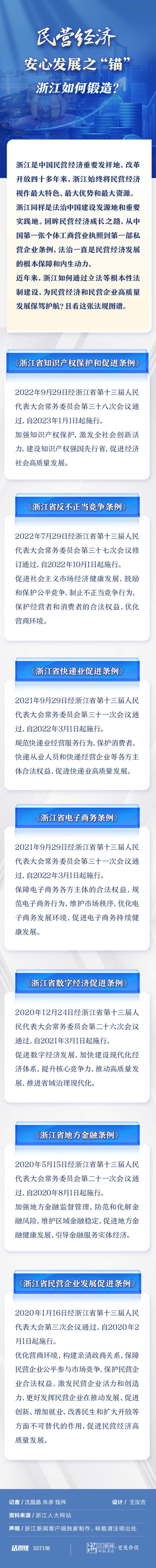 盯住一个“法”字,为民营经济锻造稳定之“锚”,浙江在立法等深层次制度建设上,有哪些经验做法?面对复杂环境,企业家有哪些呼声和期盼,浙江如何进一步完善制度、强化执法、规范监督,让企业创业有信心、投资能放心、发展更安心?