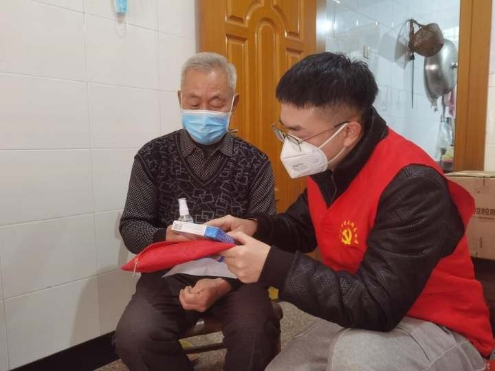 峰江街道白枫桥居委会的江枝蔚,连续两天经过李芳芳家,发现大门紧闭、老人不像往常出门散步,意识到老人可能生病了。江枝蔚主动带着防疫包上门看望,还留下了居委会暖心小分队6名成员的联系卡。老人身体最差那几天,一日三餐都是他送上门。