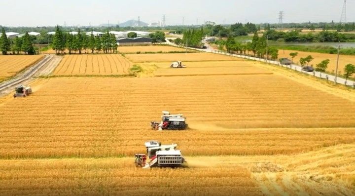 走进南浔星光农业旧馆高品质粮油未来农场,它以“科技强农”“机械强农”为主要特征。1万亩的农田有130多台机械储备运作,几乎覆盖了从生产、加工和生态循环利用的每一个环节。目前我国主要农作物耕种收综合机械化率超72%,水稻、玉米耕种收综合机械化率超80%,而星光农场的水稻生产加工实现了95%以上的机械化。
