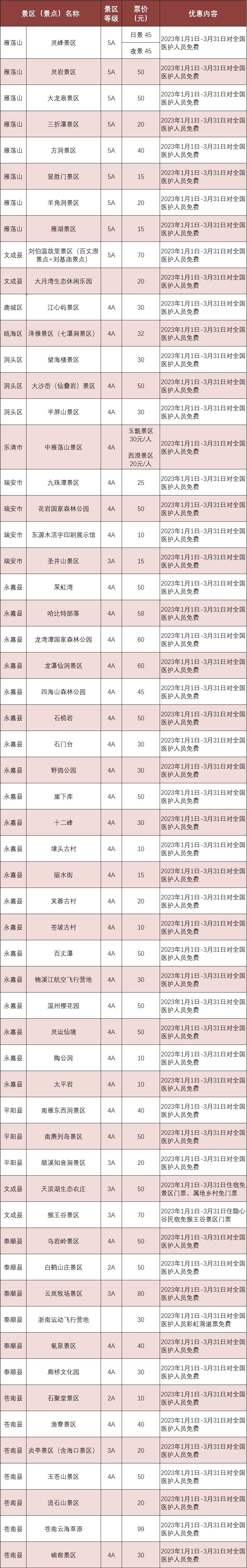 2023年一季度对全国医护人员优惠景区