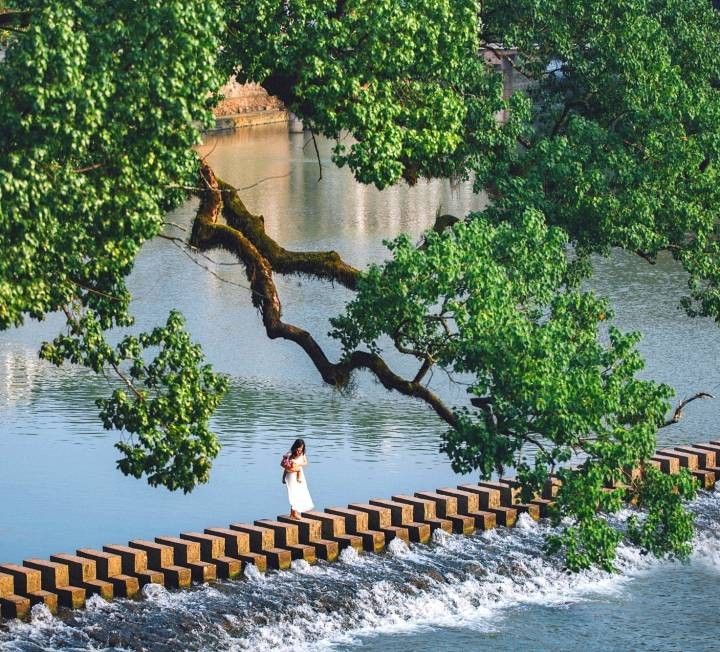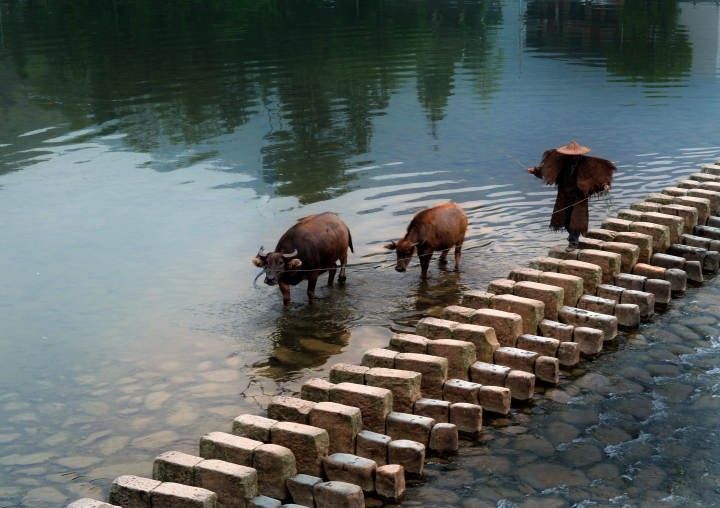 这场精彩演出的灵感取材于浙江温州泰顺县仕阳镇仕水碇步石桥。它始建于清乾隆六十年(1795年),一字型凌波延伸,是世界上最长的“古碇步”,2006年被列入全国重点文物保护单位。碇步桥全长144米,共233齿。每齿分高低两级,高的那级可供肩挑扁担者或涨水时行走,低的那级可容两人并肩而行。亲临碇步桥能给人一种返璞归真的感受。