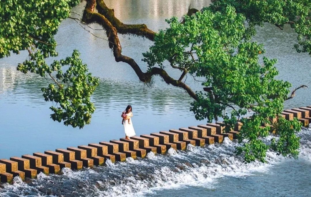 不妨想象一下:流水间隔着石桥,午后的阳光撒在碇步桥过往行人身上,行人行走间,显得小心翼翼,时间仿佛变得很慢,近处有绿水横波,远处有青山作伴。这场景就像一幅画一样安静、美好。