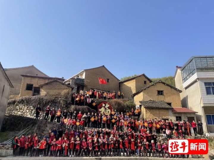 这一张全村同框的全家福年味十足、幸福洋溢。160多名村民齐聚村口,围着大红色围巾,笑脸被定格在镜头里。对东山村村民来说,拍摄整村全家福已成为一件大事。据了解,自2018年开始,该村每年春节都要在村口拍摄全体村民的大合影。