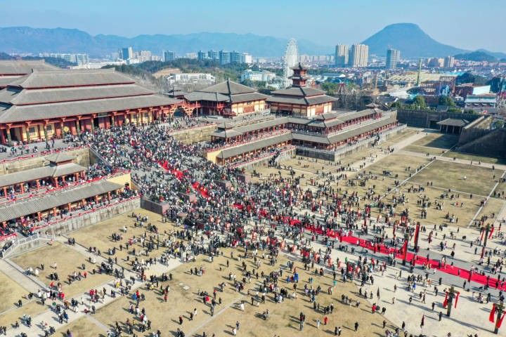 兔年春节期间,东阳市横店影视城秦王宫景区游人如织,景区人气回归。
