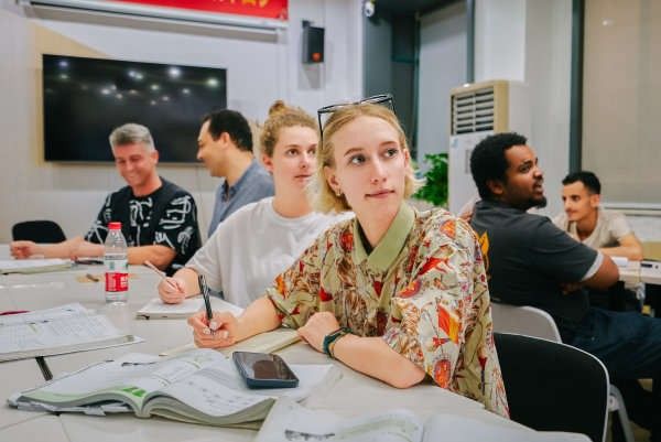 义乌市江东街道鸡鸣山社区党群服务中心二楼孔子学院,外籍学员正在上汉语课3。拍友 季宇航摄