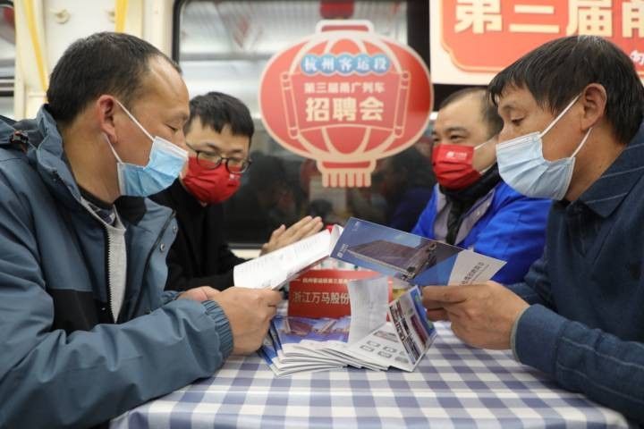 当日,西安、兰州、成都、重庆开往杭州的列车上还设了分会场,为更多旅客提供就业机会。