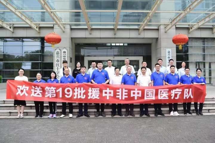 第19批援中非中国医疗队共11名队员,除一名翻译外,9名医生和一名厨师均从嘉兴选派。去年6月11日一早,他们在嘉兴市卫健委集结,前往中非共和国首都班吉,开启了为期18个月的援非医疗工作。这也是嘉兴第一次“组团”建立援非医疗队,9名医生涵盖了嘉兴市级医院内科、外科、妇科、眼科、针灸科等各学科。