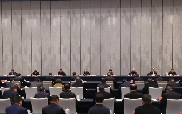 2月17日,省委书记易炼红听取舟山市委市政府工作汇报。浙江新闻客户端记者 胡元勇 摄